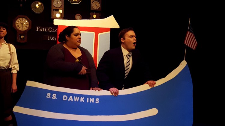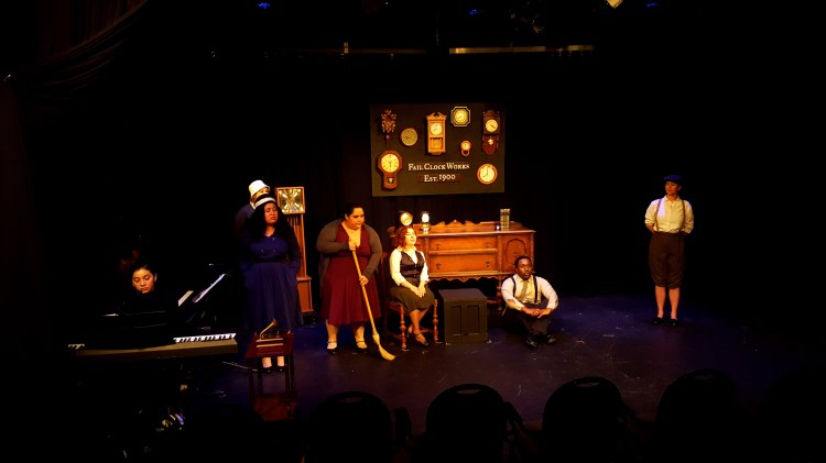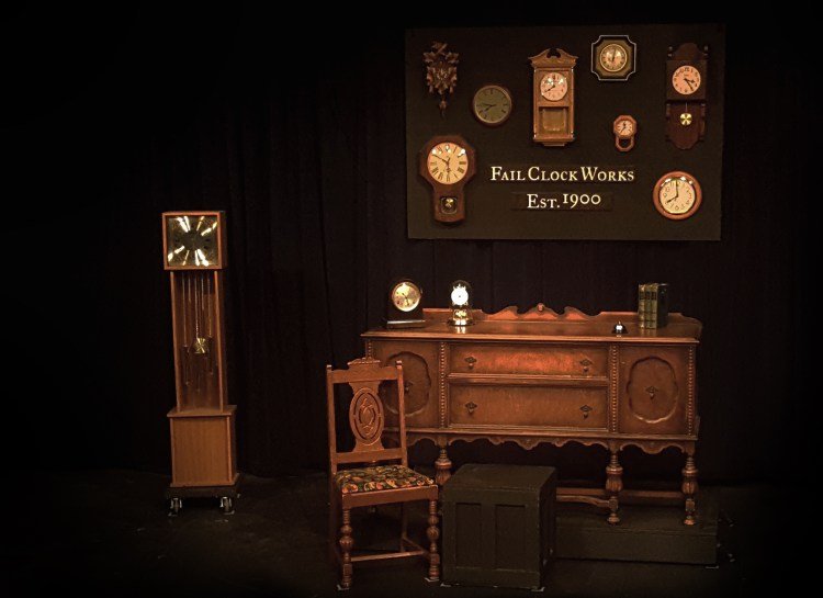 A student production of Failure: A Love Story. I helped my fellow students collect clocks, build set pieces and craft the Fail Clock Works Est. 1900.